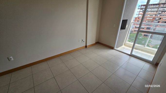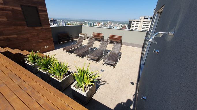 Belíssimo Apartamento de 1 dormitório, 6º andar, sala e cozinha integrada, banheiro, sacada ampla com churrasqueira, com vista panorâmica, gás central e hidrômetro individual. Com garagem.