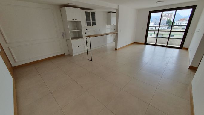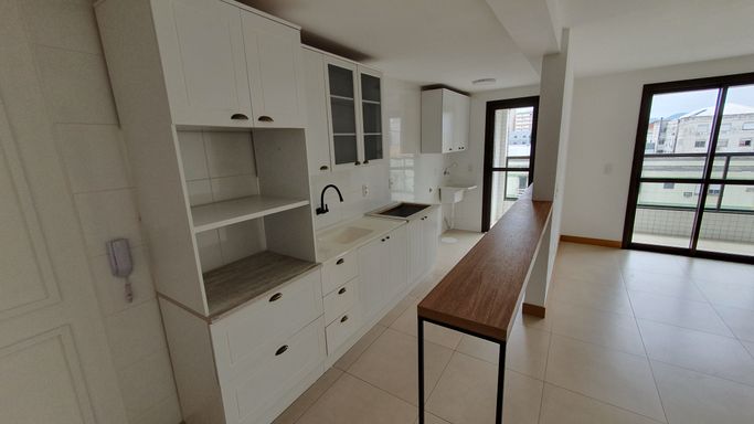Apartamento com 2 dormitórios (sendo um deles suíte), no 9º andar, sala ampla muito vem ventilada, sacada com churrasqueira, banheiro social, cozinha COM MÓVEIS PLANEJADOS e área de serviço integradas. Com garagem