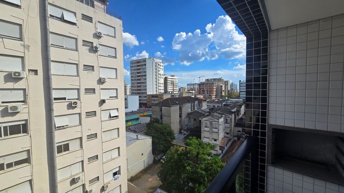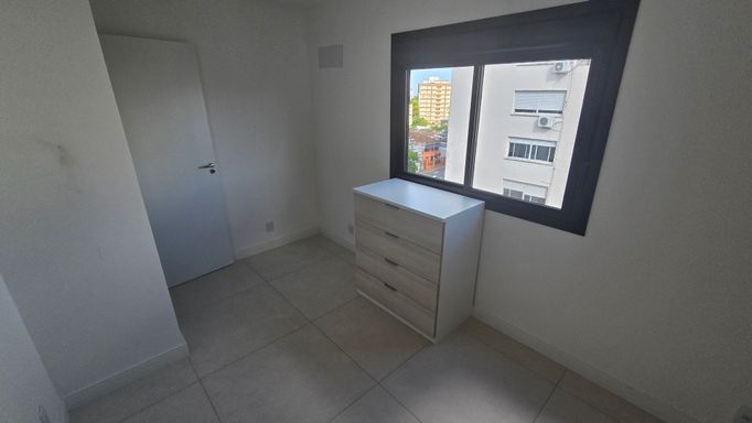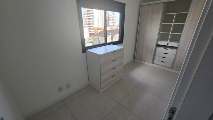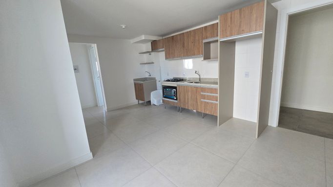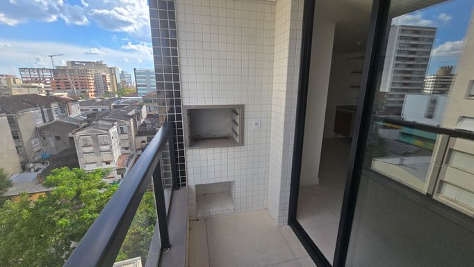 Apartamento de 2 dormitórios, 9º andar. Semi Mobiliado. Sacada com churrasqueira. E box garagem.