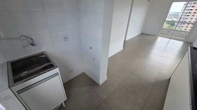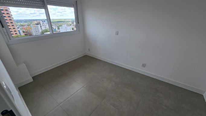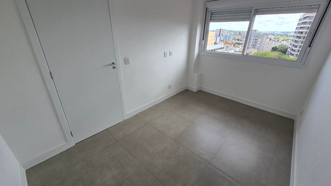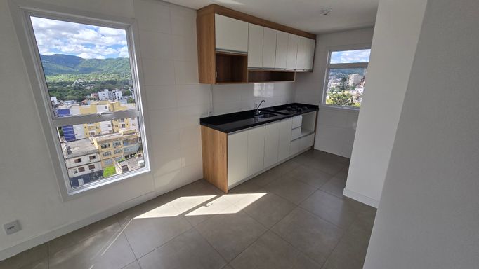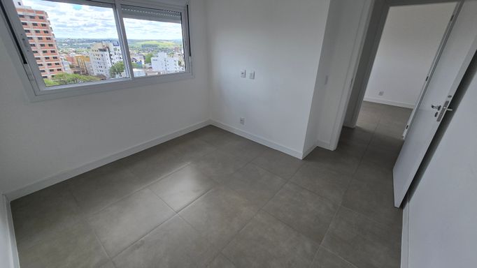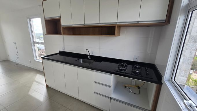 Apartamento de 2 dormitórios, NOVO, vista panorâmica, 9º andar, sala e cozinha integrada, banheiro, sacada ampla com churrasqueira, gás central e hidrômetro individual. Com garagem
