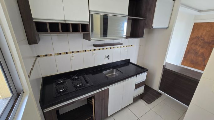 Apartamento 2 dormitórios, Térreo, banheiro, sala, cozinha e área de serviço em conceito aberto COM MÓVEIS PLANEJADOS, sacada FECHADA EM VIDRO, gás central, hidrômetro individual, c/estacionamento coberto.