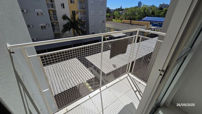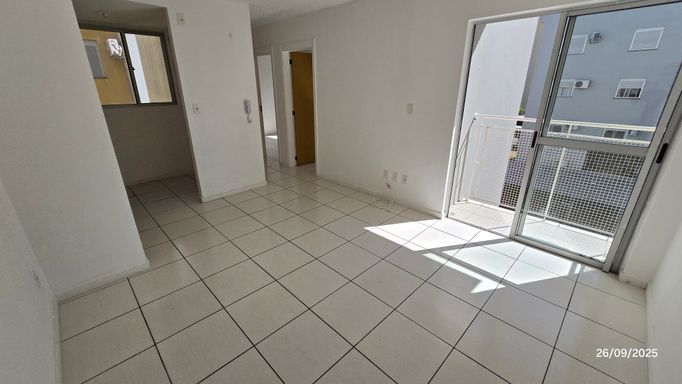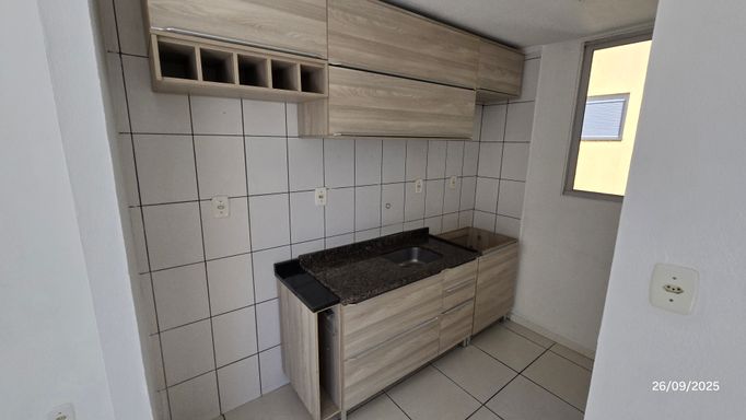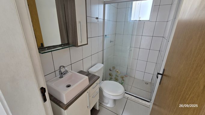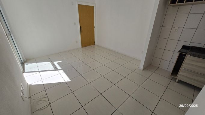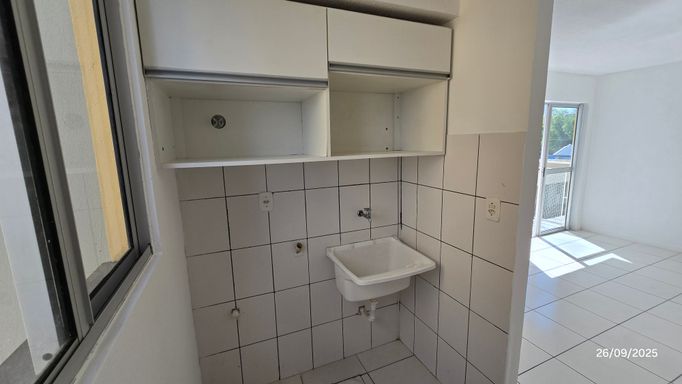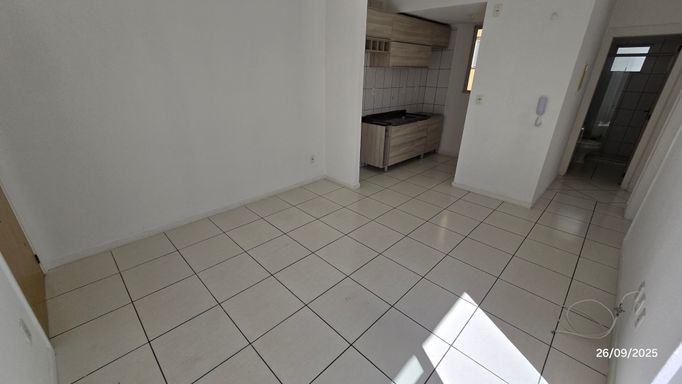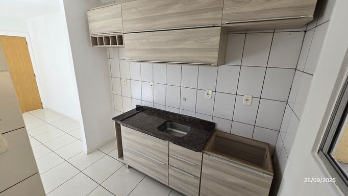 Apartamento 2 dormitórios, 3º andar, banheiro, sala, cozinha com móveis planejados e área de serviço em conceito aberto, sacada, gás central, hidrômetro individual, c/estacionamento coberto.