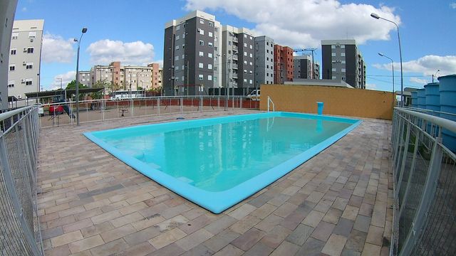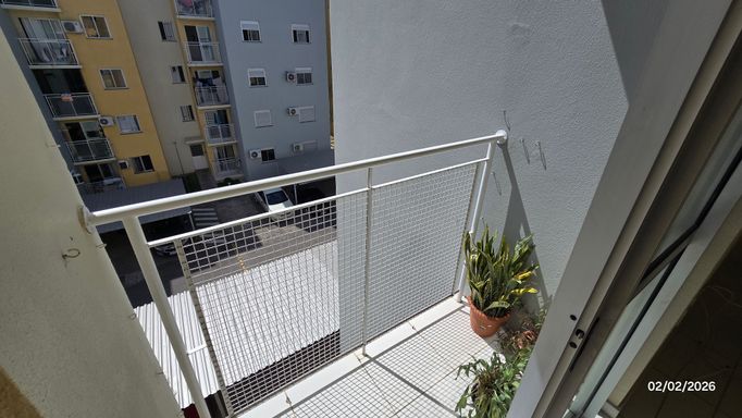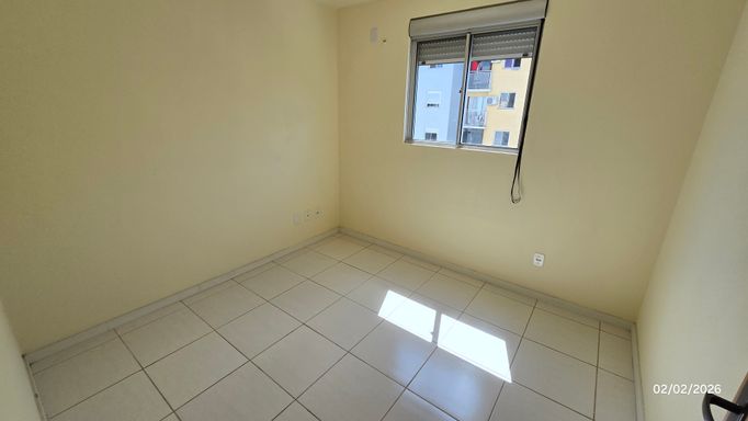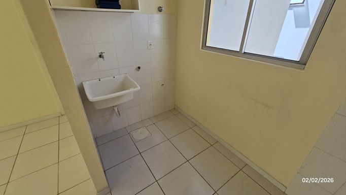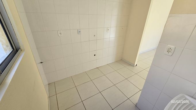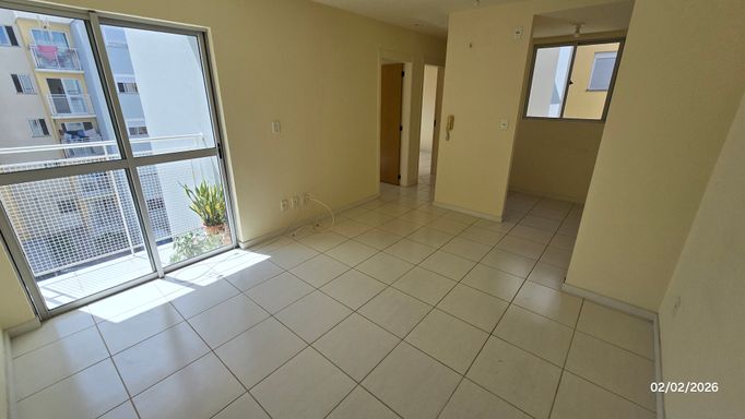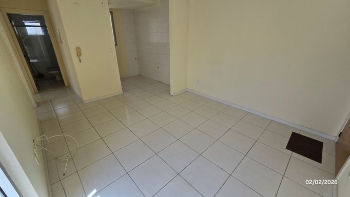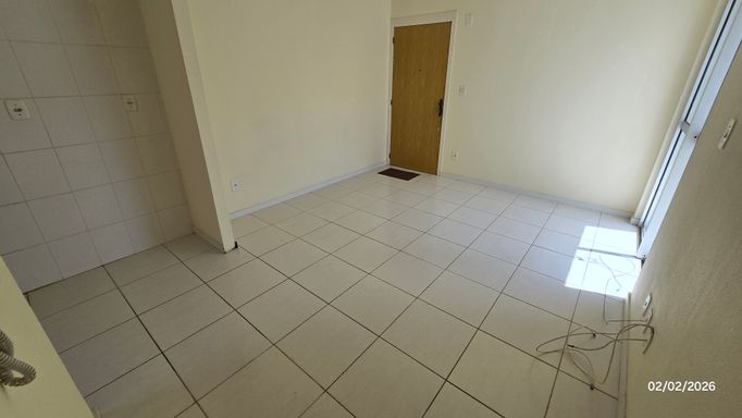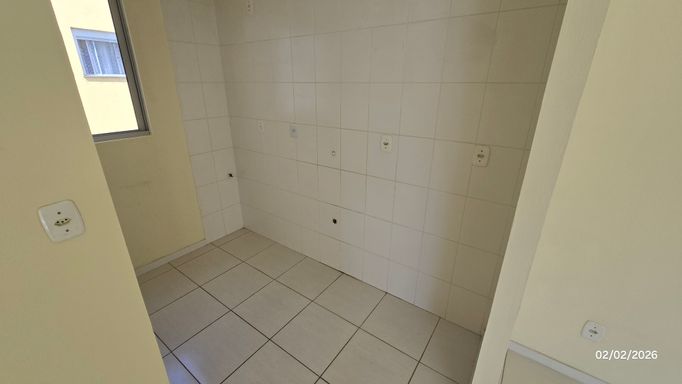 Apartamento 2 dormitórios, 2º andar, banheiro, sala, cozinha e área de serviço em conceito aberto, sacada, gás central, hidrômetro individual, c/estacionamento coberto.