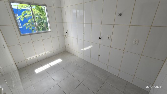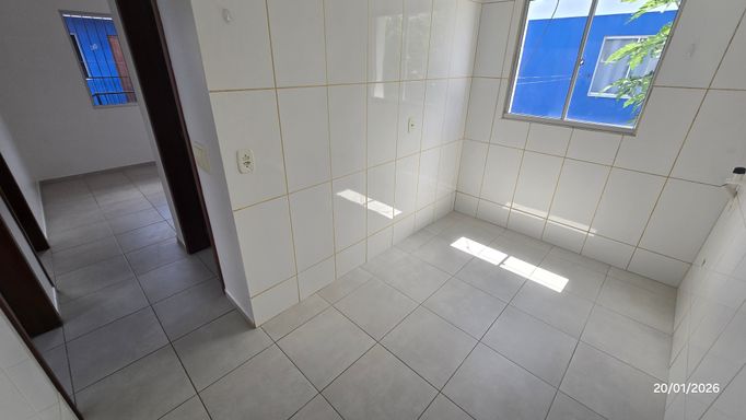Apartamento, com 2 dormitórios, sala, banheiro, cozinha e área de serviço integrada. Com garagem.