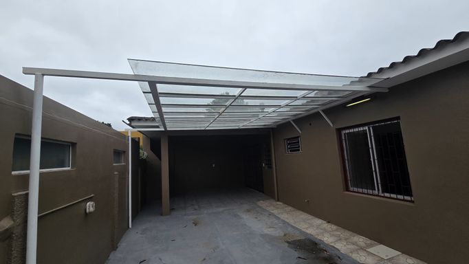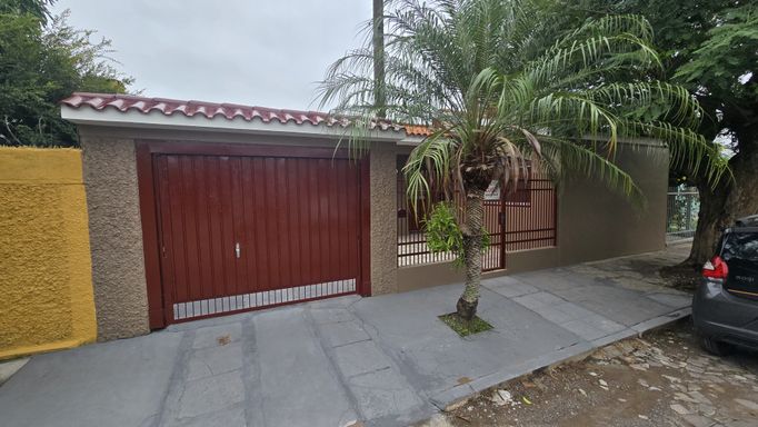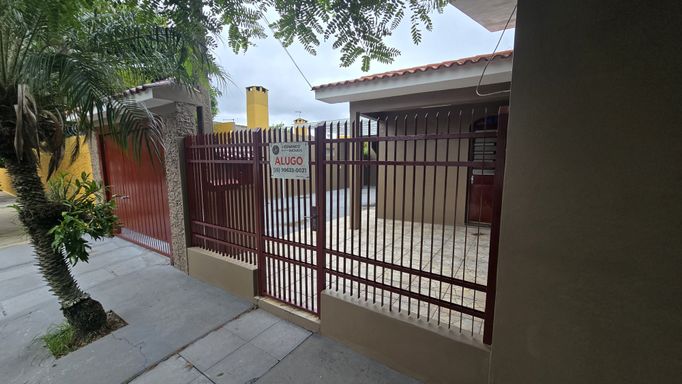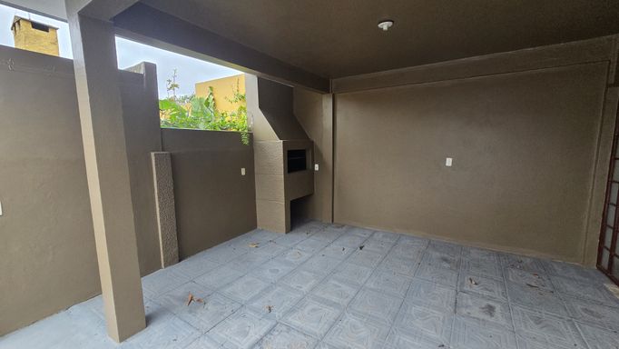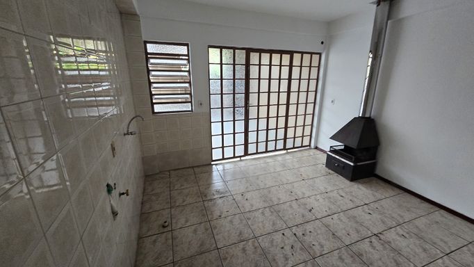 Casa com 3 dormitórios, banheiro social, sala, cozinha e área de serviço, churrasqueira, lareira, banheiro auxiliar, pátio e garagem para 2 carros.